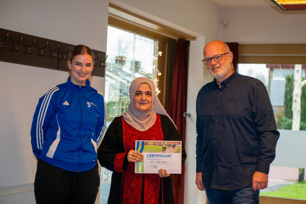Afgelopen vrijdag 19 december vond de laatste fietsles en de aansluitende diploma-uitreiking plaats voor een nieuwe groep statushouders in Enkhuizen. Sinds september hebben tien deelnemende dames wekelijks hard geoefend om te leren fietsen. Na afloop van de 12-weekse fietscursus werd de bijzondere prestatie feestelijk afgesloten met een diploma-uitreiking.